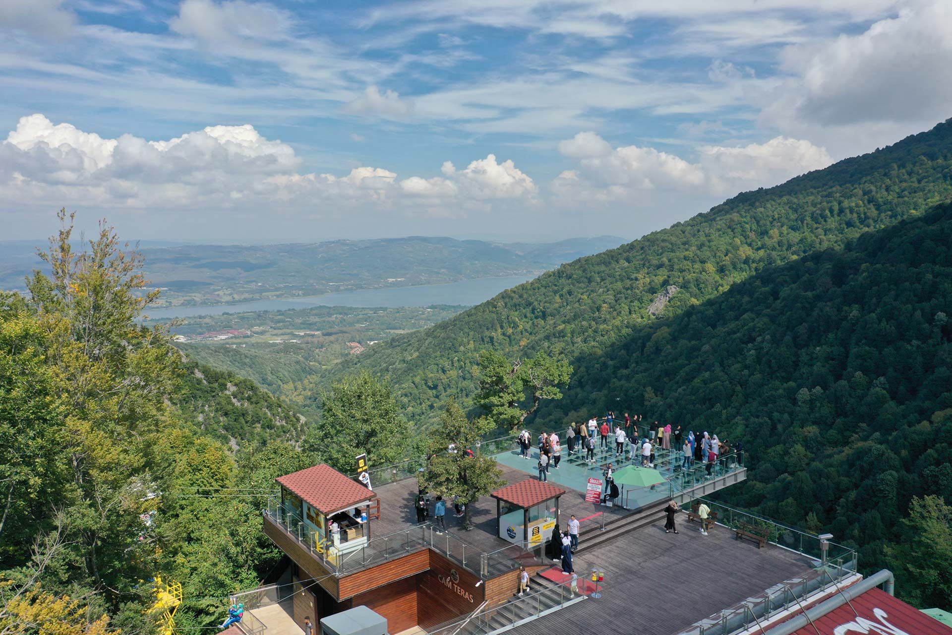 Click for directionsThe Glass Terrace in Kartepe offers a unique viewing pleasure with its nature and lake view, and is the first glass terrace of the Marmara Region with a height of approximately 185 meters. You can dine in the restaurant with the sounds of water accompanying the view of Sapanca Lake, which fascinates with its beauty through the Samanlı Mountains, and you can experience the pleasure and adrenaline of watching in the Adventure Park while your children spend time in the playground.